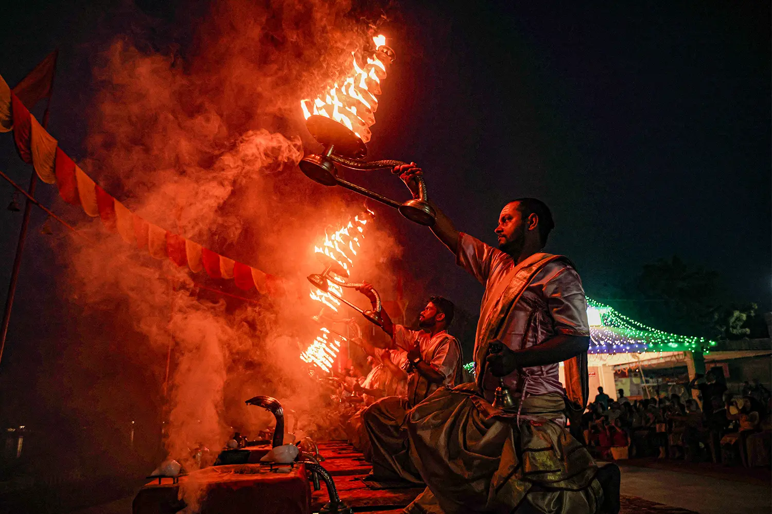 During the ceremony, priests perform rituals with lamps while devotional hymns and chants fill the air. Devotees often light diyas and place them in the river as offerings of prayer and gratitude. The sight of the illuminated ghats and the rhythmic chanting creates a deeply moving and memorable experience for visitors.